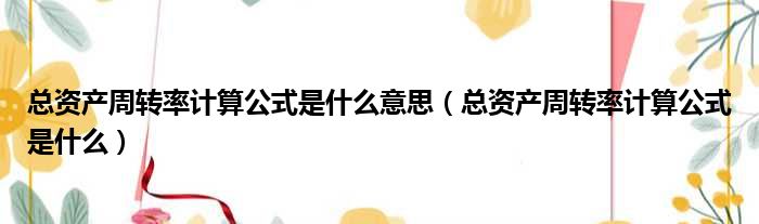 大家好,今天小六子来为大家解答以下的问题,关于总资产周转率计算公式是什么意思,总资产周转率计算公式是什么这个很多人还不知道,现在让我们一起来看看吧!