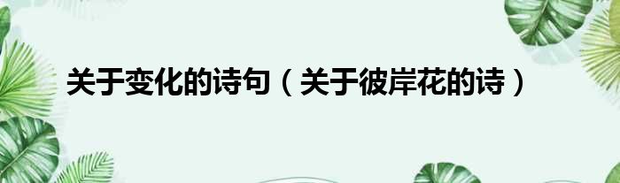 大家好,今天小六子来为大家解答以下的问题,关于关于变化的诗句,关于彼岸花的诗这个很多人还不知道,现在让我们一起来看看吧!