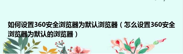 大家好,今天小六子来为大家解答以下的问题,关于如何设置360安全浏览器为默认浏览器,怎么设置360安全浏览器为默认的浏览器这个很多人还不知道,现在让我们一起来看看吧!