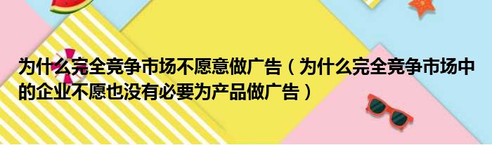 大家好,今天小六子来为大家解答以下的问题,关于为什么完全竞争市场不愿意做广告,为什么完全竞争市场中的企业不愿也没有必要为产品做广告这个很多人还不知道,现在让我们一起来看看吧!