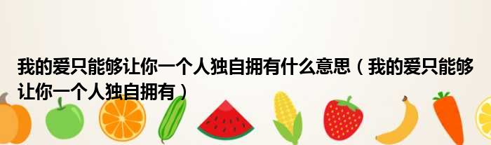 大家好,今天小六子来为大家解答以下的问题,关于我的爱只能够让你一个人独自拥有什么意思,我的爱只能够让你一个人独自拥有这个很多人还不知道,现在让我们一起来看看吧!