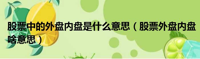 大家好,今天小六子来为大家解答以下的问题,关于股票中的外盘内盘是什么意思,股票外盘内盘啥意思这个很多人还不知道,现在让我们一起来看看吧!