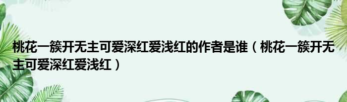 大家好,今天小六子来为大家解答以下的问题,关于桃花一簇开无主可爱深红爱浅红的作者是谁,桃花一簇开无主可爱深红爱浅红这个很多人还不知道,现在让我们一起来看看吧!