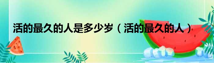 大家好,今天小六子来为大家解答以下的问题,关于活的最久的人是多少岁,活的最久的人这个很多人还不知道,现在让我们一起来看看吧!