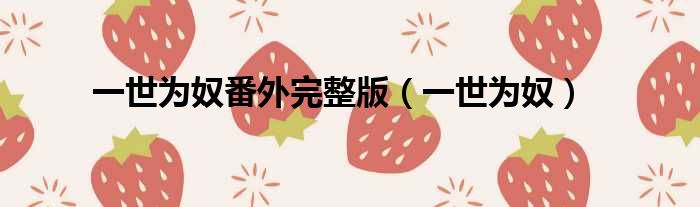 大家好,今天小六子来为大家解答以下的问题,关于一世为奴番外完整版,一世为奴这个很多人还不知道,现在让我们一起来看看吧!