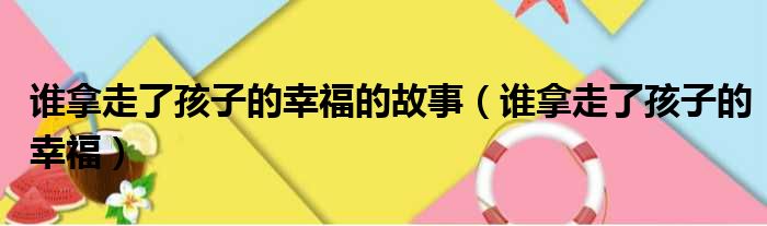 大家好,今天小六子来为大家解答以下的问题,关于谁拿走了孩子的幸福的故事,谁拿走了孩子的幸福这个很多人还不知道,现在让我们一起来看看吧!
