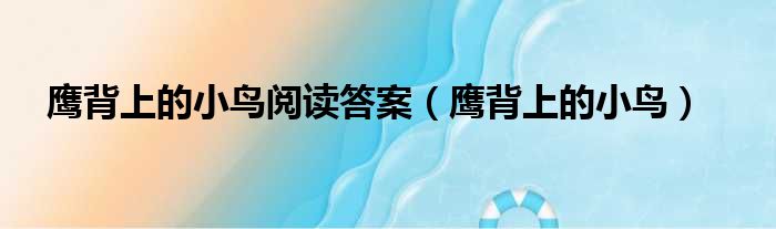 大家好,今天小六子来为大家解答以下的问题,关于鹰背上的小鸟阅读答案,鹰背上的小鸟这个很多人还不知道,现在让我们一起来看看吧!