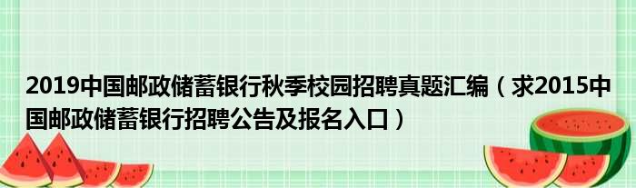 大家好,今天小六子来为大家解答以下的问题,关于2019中国邮政储蓄银行秋季校园招聘真题汇编,求2015中国邮政储蓄银行招聘公告及报名入口这个很多人还不知道,现在让我们一起来看看吧!