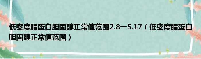 大家好,今天小六子来为大家解答以下的问题,关于低密度脂蛋白胆固醇正常值范围2.8一5.17,低密度脂蛋白胆固醇正常值范围这个很多人还不知道,现在让我们一起来看看吧!