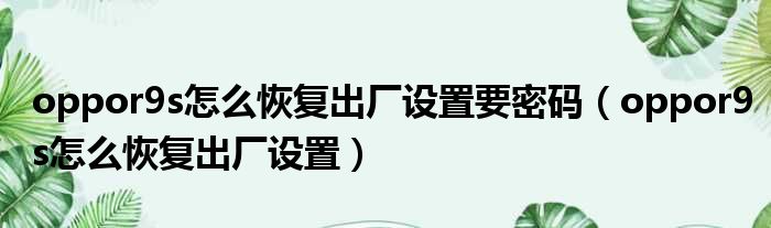 大家好,今天小六子来为大家解答以下的问题,关于oppor9s怎么恢复出厂设置要密码,oppor9s怎么恢复出厂设置这个很多人还不知道,现在让我们一起来看看吧!