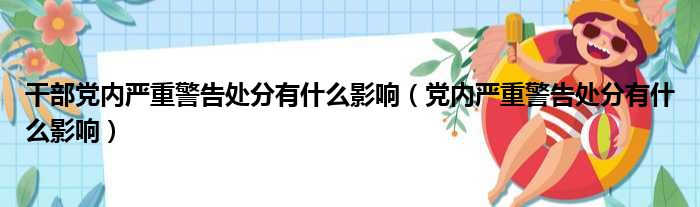 大家好,今天小六子来为大家解答以下的问题,关于干部党内严重警告处分有什么影响,党内严重警告处分有什么影响这个很多人还不知道,现在让我们一起来看看吧!