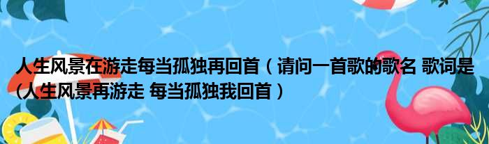 大家好,今天小六子来为大家解答以下的问题,关于人生风景在游走每当孤独再回首,请问一首歌的歌名 歌词是(人生风景再游走 每当孤独我回首这个很多人还不知道,现在让我们一起来看看吧!