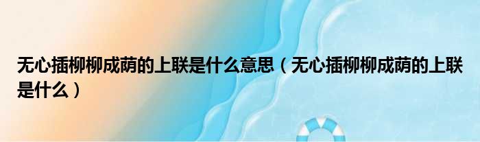 无心插柳柳成荫的上联是什么意思 无心插柳柳成荫的上联是什么 网络整理 经验 2023-07-01 15:00:08 大家好,今天小六子来为大家解答以下的问题,关于无心插柳柳成荫的上联是什么意思,无心插柳柳成荫的上联是什么这个很多人还不知道,现在让我们一起来看看吧!1、有心栽花花不开,无心插柳柳成荫。2、望采纳。本文分享完毕,希望对你有所帮助。 声明:免责声明:本文来源网友投稿及网络整合仅代表文章作者的个人观点,与本站无关。其原创性、真实性以及文中陈述文字和内容未经本站证实,对本文以及其中全部或者部分内容文字的真实性、完整性和原创性本站不作任何保证或承诺,请读者仅作参考,并自行核实相关内容。投诉邮箱:1765130767@qq.com。 本文地址:https://www.anfu123.com/jingyan/82676.html