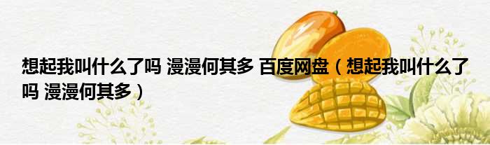 大家好,今天小六子来为大家解答以下的问题,关于想起我叫什么了吗 漫漫何其多 百度网盘,想起我叫什么了吗 漫漫何其多这个很多人还不知道,现在让我们一起来看看吧!