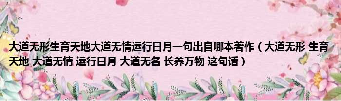 大家好,今天小六子来为大家解答以下的问题,关于大道无形生育天地大道无情运行日月一句出自哪本著作,大道无形 生育天地 大道无情 运行日月 大道无名 长养万物 这句话这个很多人还不知道,现在让我们一起来看看吧!