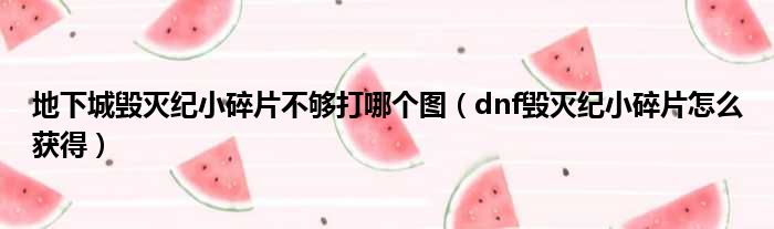 大家好,今天小六子来为大家解答以下的问题,关于地下城毁灭纪小碎片不够打哪个图,dnf毁灭纪小碎片怎么获得这个很多人还不知道,现在让我们一起来看看吧!