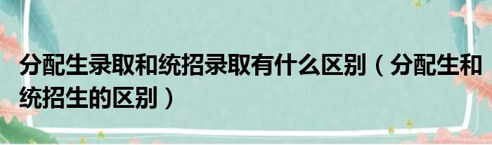 大家好,今天小六子来为大家解答以下的问题,关于分配生录取和统招录取有什么区别,分配生和统招生的区别这个很多人还不知道,现在让我们一起来看看吧!