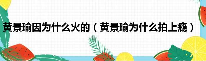 大家好,今天小六子来为大家解答以下的问题,关于黄景瑜因为什么火的,黄景瑜为什么拍上瘾这个很多人还不知道,现在让我们一起来看看吧!