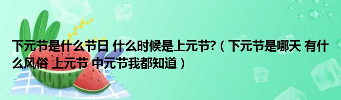 大家好,今天小六子来为大家解答以下的问题,关于下元节是什么节日 什么时候是上元节?,下元节是哪天 有什么风俗 上元节 中元节我都知道这个很多人还不知道,现在让我们一起来看看吧!
