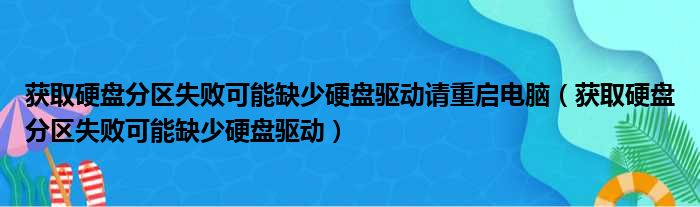 大家好,今天小六子来为大家解答以下的问题,关于获取硬盘分区失败可能缺少硬盘驱动请重启电脑,获取硬盘分区失败可能缺少硬盘驱动这个很多人还不知道,现在让我们一起来看看吧!