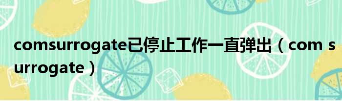大家好,今天小六子来为大家解答以下的问题,关于comsurrogate已停止工作一直弹出,com surrogate这个很多人还不知道,现在让我们一起来看看吧!