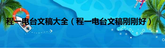 大家好,今天小六子来为大家解答以下的问题,关于程一电台文稿大全,程一电台文稿刚刚好这个很多人还不知道,现在让我们一起来看看吧!