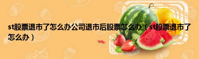 大家好,今天小六子来为大家解答以下的问题,关于st股票退市了怎么办公司退市后股票怎么办,st股票退市了怎么办这个很多人还不知道,现在让我们一起来看看吧!