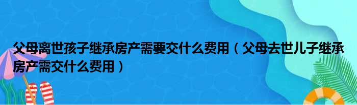 大家好,今天小六子来为大家解答以下的问题,关于父母离世孩子继承房产需要交什么费用,父母去世儿子继承房产需交什么费用这个很多人还不知道,现在让我们一起来看看吧!