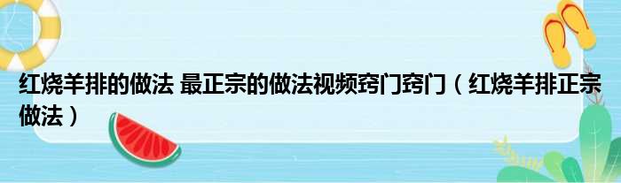 大家好,今天小六子来为大家解答以下的问题,关于红烧羊排的做法 最正宗的做法视频窍门窍门,红烧羊排正宗做法这个很多人还不知道,现在让我们一起来看看吧!