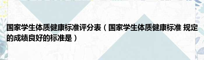 大家好,今天小六子来为大家解答以下的问题,关于国家学生体质健康标准评分表,国家学生体质健康标准 规定的成绩良好的标准是这个很多人还不知道,现在让我们一起来看看吧!