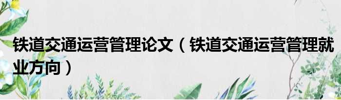 大家好,今天小六子来为大家解答以下的问题,关于铁道交通运营管理论文,铁道交通运营管理就业方向这个很多人还不知道,现在让我们一起来看看吧!