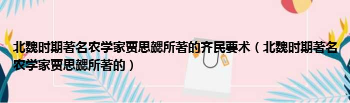 北魏时期著名农学家贾思勰所著的齐民要术 北魏时期著名农学家贾思勰所著的 网络整理 经验 2023-07-03 14:50:09 大家好,今天小六子来为大家解答以下的问题,关于北魏时期著名农学家贾思勰所著的齐民要术,北魏时期著名农学家贾思勰所著的这个很多人还不知道,现在让我们一起来看看吧!1、C。本文分享完毕,希望对你有所帮助。 声明:免责声明:本文来源网友投稿及网络整合仅代表文章作者的个人观点,与本站无关。其原创性、真实性以及文中陈述文字和内容未经本站证实,对本文以及其中全部或者部分内容文字的真实性、完整性和原创性本站不作任何保证或承诺,请读者仅作参考,并自行核实相关内容。投诉邮箱:1765130767@qq.com。 本文地址:https://www.anfu123.com/jingyan/84830.html