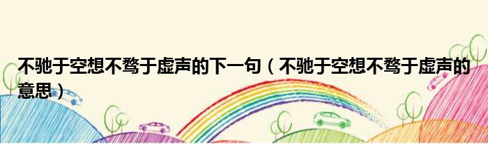 不驰于空想不骛于虚声的下一句 不驰于空想不骛于虚声的意思 网络整理 经验 2023-07-03 15:25:08 大家好,今天小六子来为大家解答以下的问题,关于不驰于空想不骛于虚声的下一句,不驰于空想不骛于虚声的意思这个很多人还不知道,现在让我们一起来看看吧!1、本本分分做人。2、踏踏实实做事。3、不求虚名。本文分享完毕,希望对你有所帮助。 声明:免责声明:本文来源网友投稿及网络整合仅代表文章作者的个人观点,与本站无关。其原创性、真实性以及文中陈述文字和内容未经本站证实,对本文以及其中全部或者部分内容文字的真实性、完整性和原创性本站不作任何保证或承诺,请读者仅作参考,并自行核实相关内容。投诉邮箱:1765130767@qq.com。 本文地址:https://www.anfu123.com/jingyan/84839.html