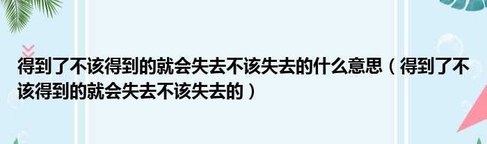 大家好,今天小六子来为大家解答以下的问题,关于得到了不该得到的就会失去不该失去的什么意思,得到了不该得到的就会失去不该失去的这个很多人还不知道,现在让我们一起来看看吧!