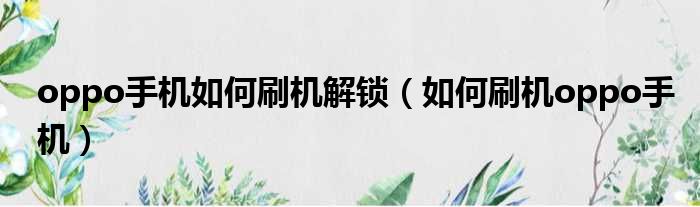 大家好,今天小六子来为大家解答以下的问题,关于oppo手机如何刷机解锁,如何刷机oppo手机这个很多人还不知道,现在让我们一起来看看吧!