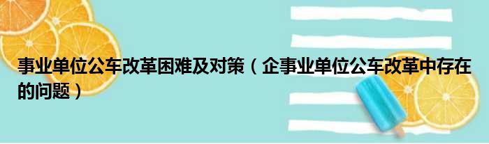 1、企事业单位公车改革中存在的问题:伴随着事业单位的各项改革,公车改革在事业单位分类改革中遇到了阻碍和瓶颈。