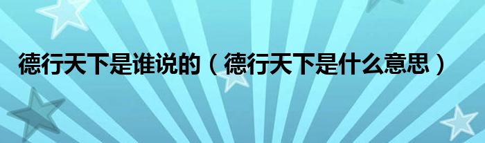 大家好,今天小六子来为大家解答以下的问题,关于德行天下是谁说的,德行天下是什么意思这个很多人还不知道,现在让我们一起来看看吧!