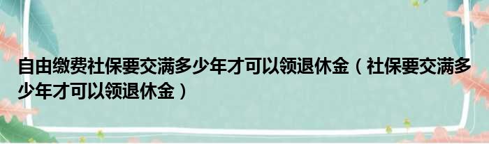 大家好,今天小六子来为大家解答以下的问题,关于自由缴费社保要交满多少年才可以领退休金,社保要交满多少年才可以领退休金这个很多人还不知道,现在让我们一起来看看吧!