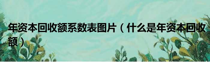 大家好,今天小六子来为大家解答以下的问题,关于年资本回收额系数表图片,什么是年资本回收额这个很多人还不知道,现在让我们一起来看看吧!