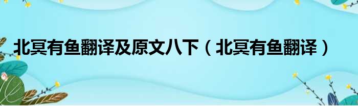 大家好,今天小六子来为大家解答以下的问题,关于北冥有鱼翻译及原文八下,北冥有鱼翻译这个很多人还不知道,现在让我们一起来看看吧!