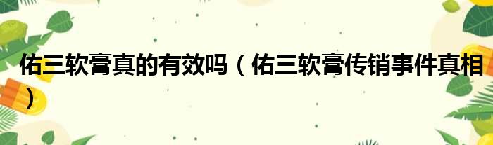 大家好,今天小六子来为大家解答以下的问题,关于佑三软膏真的有效吗,佑三软膏传销事件真相这个很多人还不知道,现在让我们一起来看看吧!