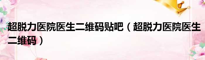 大家好,今天小六子来为大家解答以下的问题,关于超脱力医院医生二维码贴吧,超脱力医院医生二维码这个很多人还不知道,现在让我们一起来看看吧!