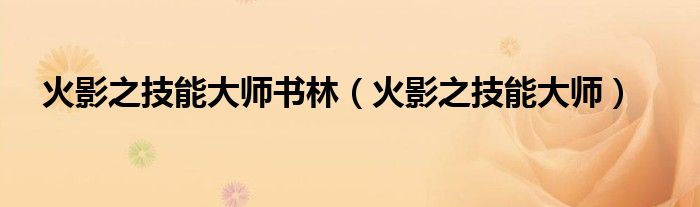 大家好,今天小六子来为大家解答以下的问题,关于火影之技能大师书林,火影之技能大师这个很多人还不知道,现在让我们一起来看看吧!