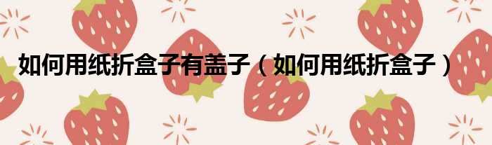 大家好,今天小六子来为大家解答以下的问题,关于如何用纸折盒子有盖子,如何用纸折盒子这个很多人还不知道,现在让我们一起来看看吧!