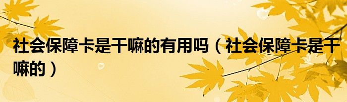 大家好,今天小六子来为大家解答以下的问题,关于社会保障卡是干嘛的有用吗,社会保障卡是干嘛的这个很多人还不知道,现在让我们一起来看看吧!