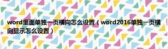 1、word2016怎么设置单独一页横向显示? 要改变Word2016的页面方向,主要还是要熟练运用分页符。