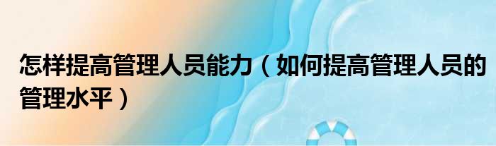 大家好,今天小六子来为大家解答以下的问题,关于怎样提高管理人员能力,如何提高管理人员的管理水平这个很多人还不知道,现在让我们一起来看看吧!