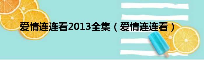 大家好,今天小六子来为大家解答以下的问题,关于爱情连连看2013全集,爱情连连看这个很多人还不知道,现在让我们一起来看看吧!