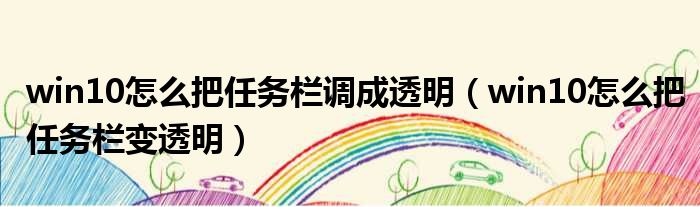 win10怎么把任务栏调成透明 win10怎么把任务栏变透明 网络整理 经验 2023-07-04 17:40:04 大家好,今天小六子来为大家解答以下的问题,关于win10怎么把任务栏调成透明,win10怎么把任务栏变透明这个很多人还不知道,现在让我们一起来看看吧!1、一招让win10系统菜单栏变透明!。本文分享完毕,希望对你有所帮助。 声明:免责声明:本文来源网友投稿及网络整合仅代表文章作者的个人观点,与本站无关。其原创性、真实性以及文中陈述文字和内容未经本站证实,对本文以及其中全部或者部分内容文字的真实性、完整性和原创性本站不作任何保证或承诺,请读者仅作参考,并自行核实相关内容。投诉邮箱:1765130767@qq.com。 本文地址:https://www.anfu123.com/jingyan/86283.html