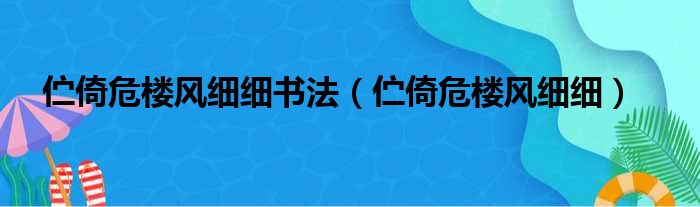 大家好,今天小六子来为大家解答以下的问题,关于伫倚危楼风细细书法,伫倚危楼风细细这个很多人还不知道,现在让我们一起来看看吧!